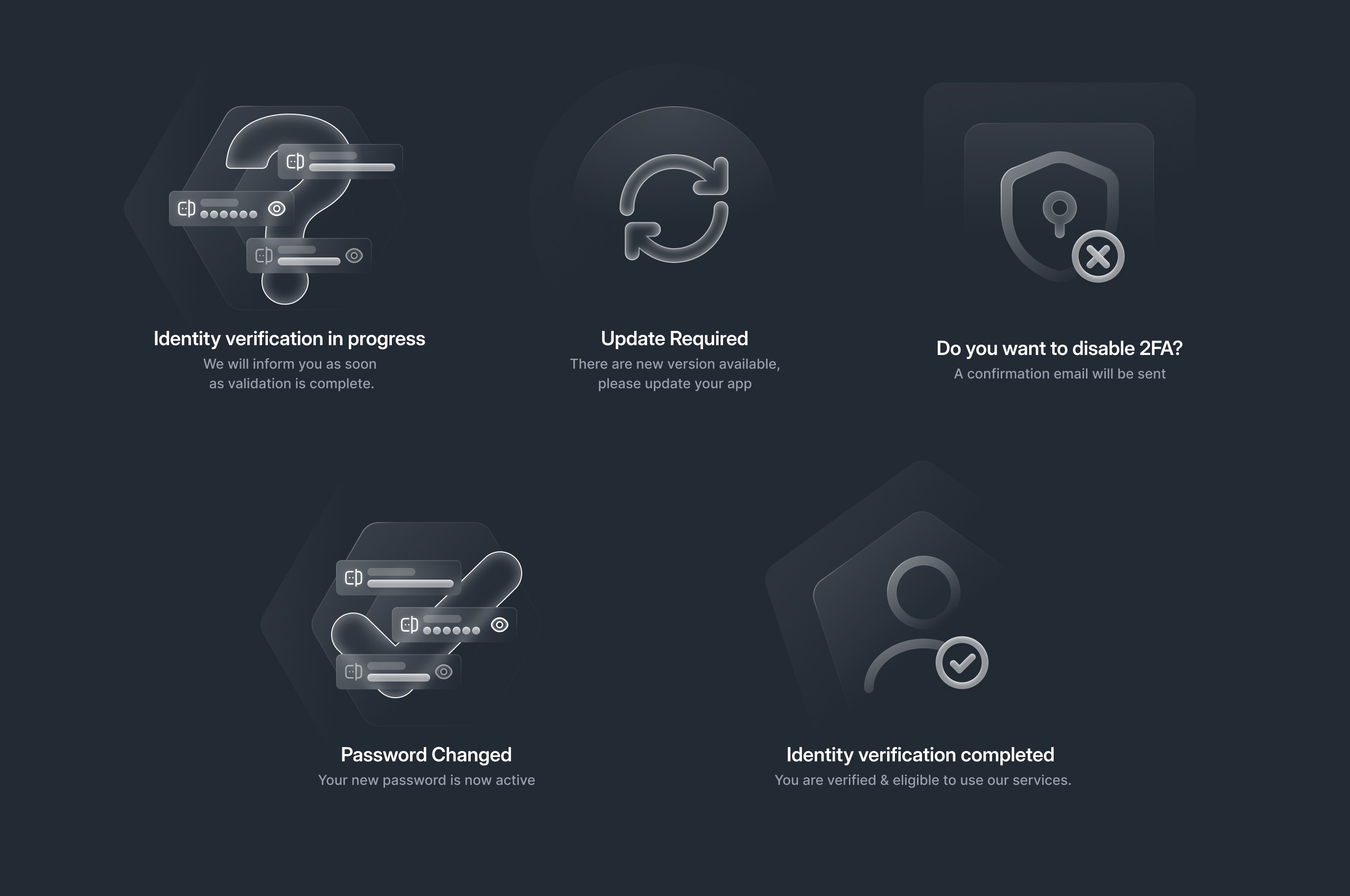 App experience centered around clarity, speed, and trust. A clean structure that organizes key functions: exchanging, wallets, and security, while intuitive UI patterns simplify complex crypto processes. Biometric login, frictionless KYC flows, and real-time transaction feedback that extends user needs. The scalable design system ensures visual consistency and flexibility for future features and product growth.