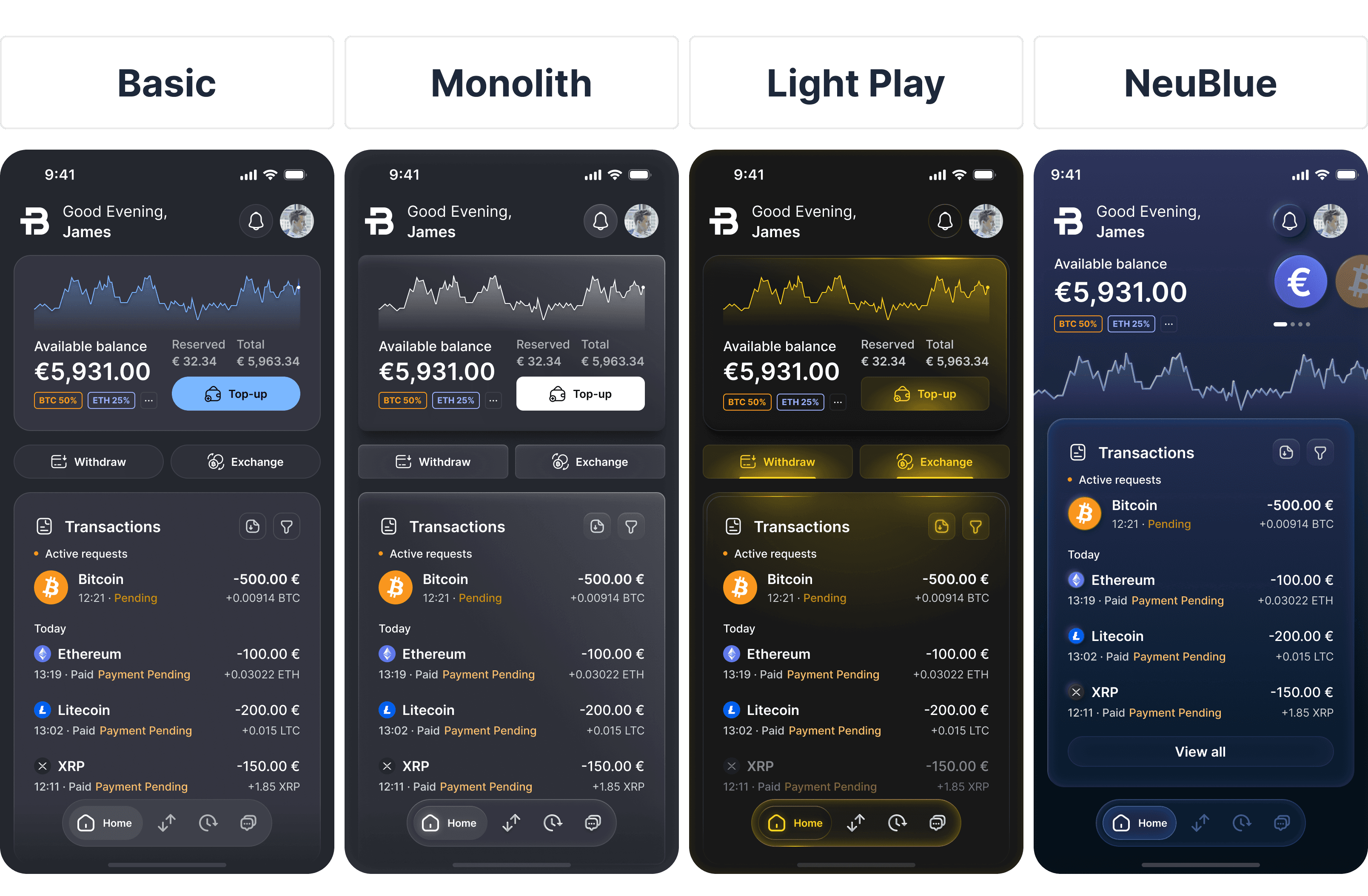 NeuBlue: Elegant gradients and depth, but visually detached from BTCBIT’s gold-centric palette.